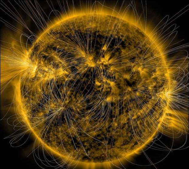 | Μια από τις πραγματικά εντυπωσιακές εικόνες του μαγνητικού πεδίου του Ηλιου. Credit: (NASA/SDO/AIA/LMSAL) |